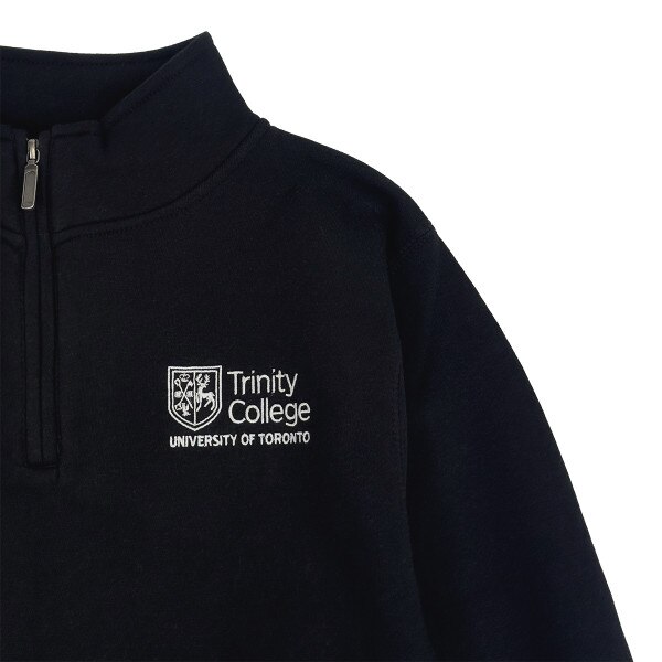 U of T Trinity College 1/4 Zip SKU QTR ZIP TRINITY RVRS EMBRD $64.99 Quantity discounts available QuantityPrice (0)No Reviews yet Size SMALL LARGE XLARGE XXLARGE Color: Quantity -+ Add to Cart Details Trinity College ¼ ZipProduct Details:Embroidered Trinity College signature on upper left chest.Ribbed waistband and arm cuffs.¼ zip closure.65% cotton... Details Back DetailsTrinity College ¼ ZipProduct Details:Embroidered Trinity College signature on upper left chest.Ribbed waistband and arm cuffs.¼ zip closure.65% cotton, 35% polyester. Ratings & ReviewsNo reviews availableBe the first to Write a Review