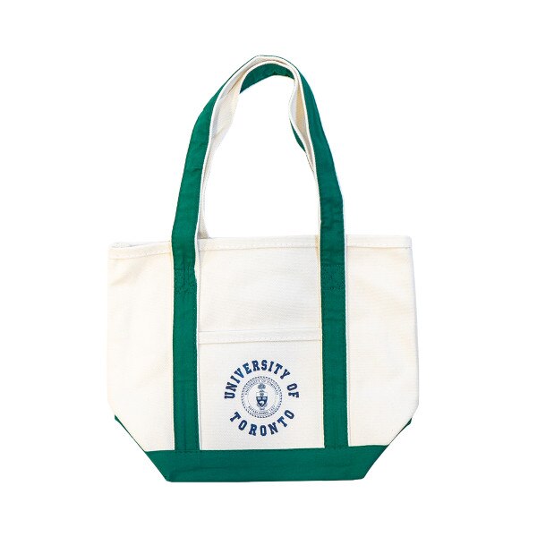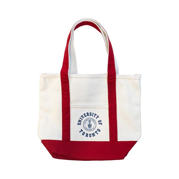 U of T Small Market Tote Bag SKU Market tote small UofT Circular $19.99 Quantity discounts available QuantityPrice (0)No Reviews yet Color: Quantity -+ Add to Cart Final Sale Details U of T Small Market Tote BagProduct Details:Screen printed U of T circular word mark around signature.Front pocket.22" handles.Cotton canvas.Approxima... Details Back DetailsU of T Small Market Tote BagProduct Details:Screen printed U of T circular word mark around signature.Front pocket.22" handles.Cotton canvas.Approximately 15" W x 12" H x 5" D. Ratings & ReviewsNo reviews availableBe the first to Write a Review
