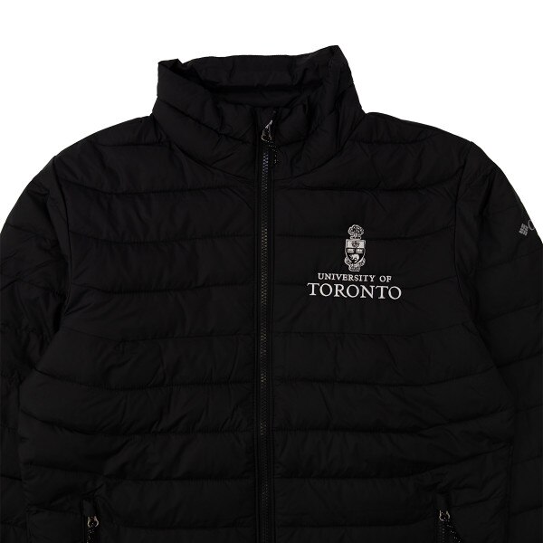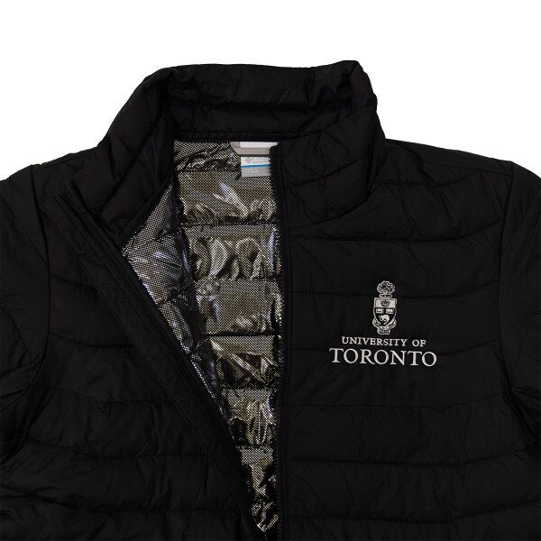 - Embroidered U of T signature on left chest, screen printed Columbia signature on upper left arm.