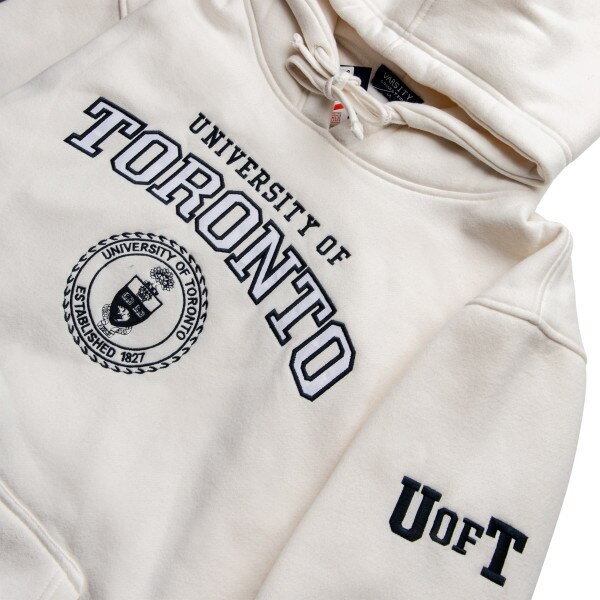 Women's Embroidered Arched Wordmark Crest Hoodie | Varsity Collection SKU Wms Emb St Wrdmrk Circ Sig Lr Fitted Hoodie Vc Uoft $69.99 Quantity discounts available QuantityPrice (0)No Reviews yet Select options Back $69.99 Size XS S M L XL Color: Size Chart Quantity -+ Add to Cart Details Women's Embroidered Arched Wordmark Crest Hoodie | Varsity CollectionProduct Details:Embroidered arched U of T word mark over circular signature.Draws... Details Back DetailsWomen's Embroidered Arched Wordmark Crest Hoodie | Varsity CollectionProduct Details:Embroidered arched U of T word mark over circular signature.Drawstring hood.Cuffed bottom hem and sleeves.Kangaroo pouch pocket.Poly-cotton blend. Ratings & ReviewsNo reviews availableBe the first to Write a Review